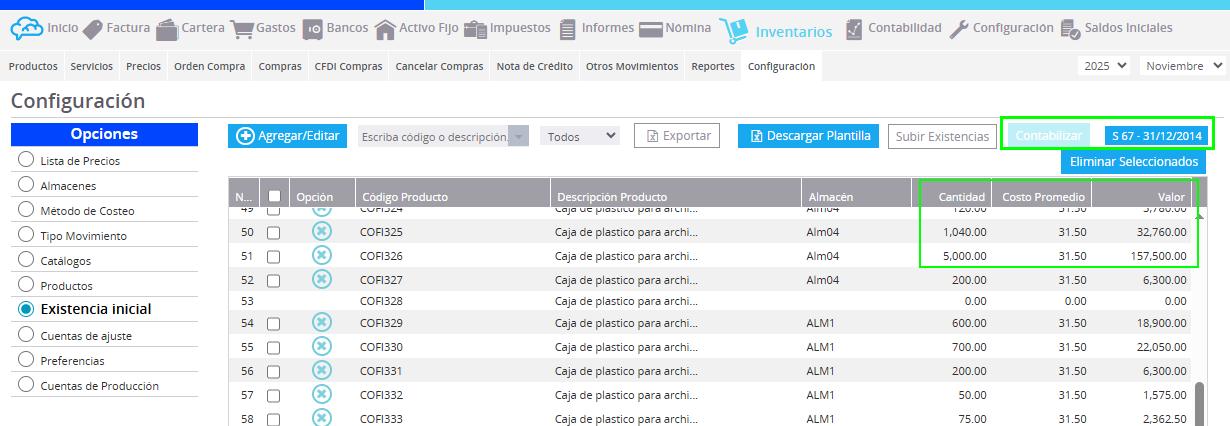 Por ello, es fundamental completar el registro de las Existencias Iniciales antes de comenzar a operar con inventarios dentro del sistema.