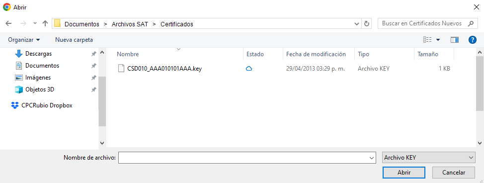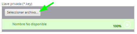 3. De un clic sobre el botón seleccionar archivo Llave privada (*.key)