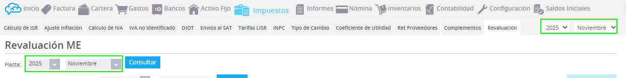 1. Esta funcionalidad se encuentra en el módulo Impuestos, menú Revaluación