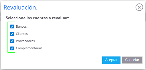 4. Se Abrirá una ventana adicional para que seleccione las opciones que desea revaluar: