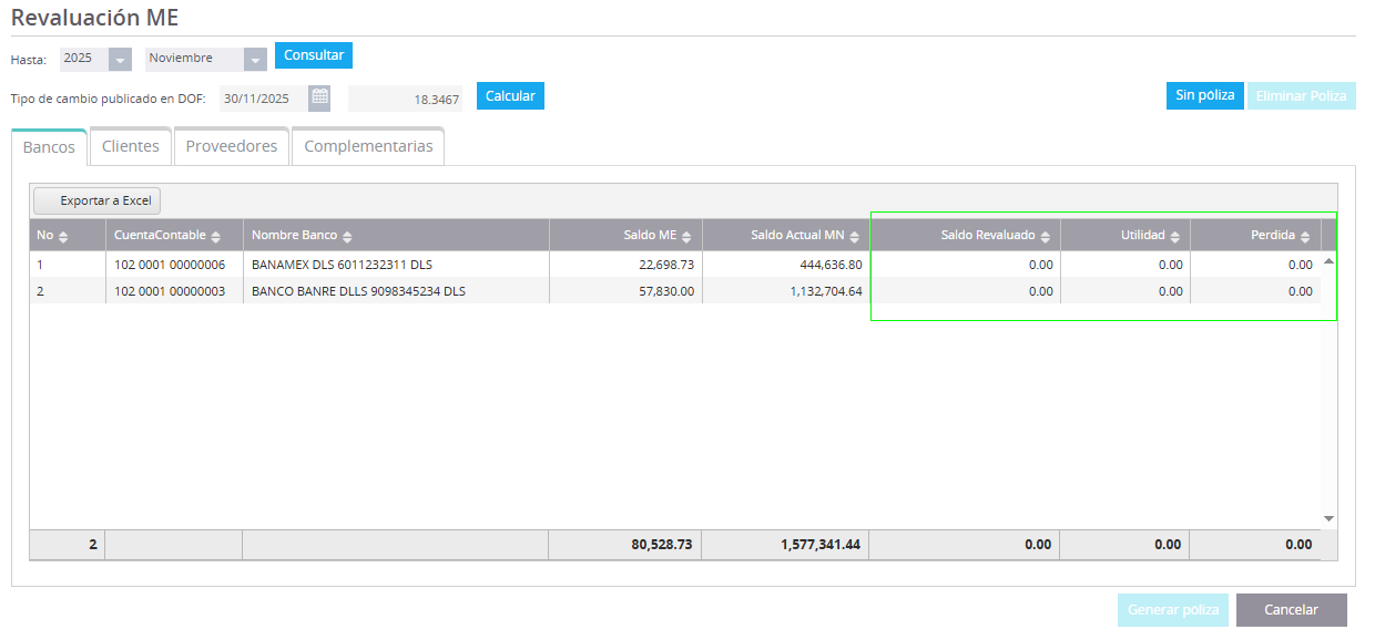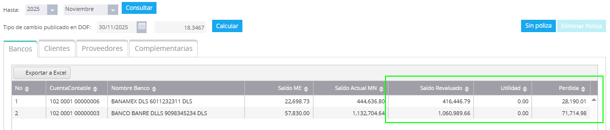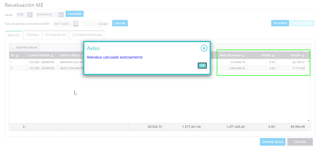 5. Seleccione la fecha y tipo de cambio con el que desea se realice la revaluación y se guarde la poliza contable