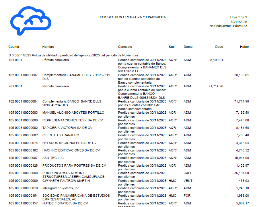 Ganancia cambiaria, si la variación favorece a la empresa.