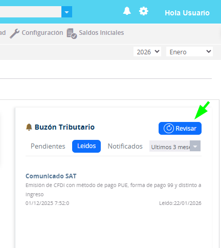 1. Haga clic en botón Revisar para que el sistema revise en su buzón tributario