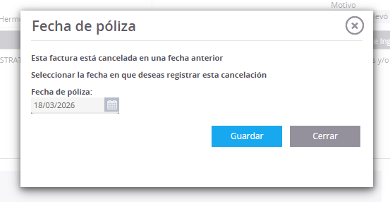 3. Después de procesar la solicitud debera seleccionar la fecha de cancelación contable: