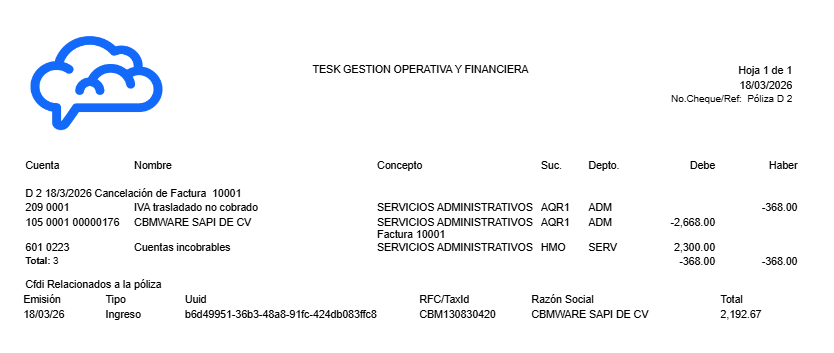 Lo nuevo, es que agregamos una opción para registrar la cancelación del saldo por incobrable, esta opción no timbra, solo realiza la cancelación contable